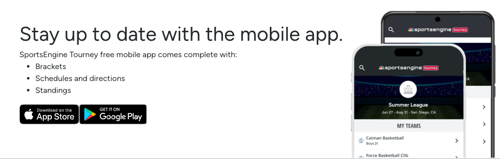 Stay up to date with the schedule by downloading Tourney Machine from the Apple Store or Google Play.